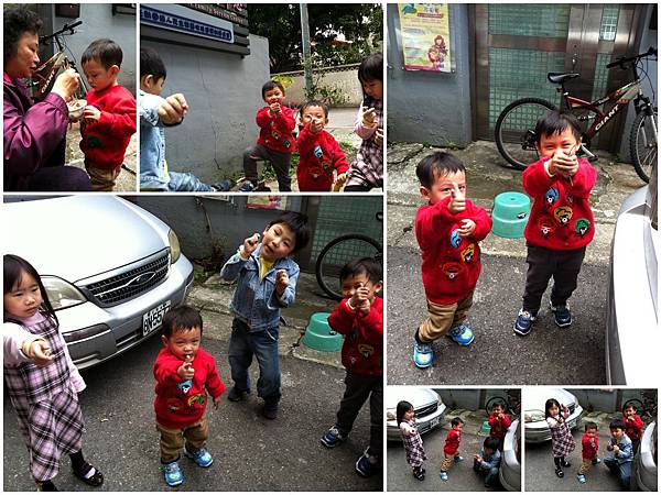 看照片,一群男孩子怎麼玩都是ㄅㄧㄥㄅㄧㄥㄅㄧㄤˋㄅㄧㄤˋ 的遊戲,阿爸阿母只好一直配合裝死...都死了千千萬萬次了啦~~
