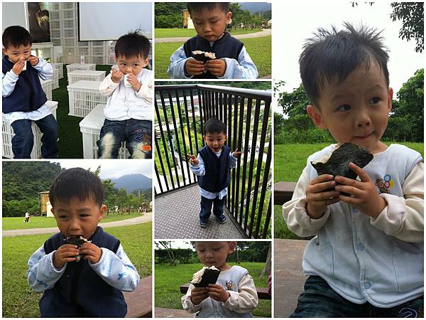 給小子們一人一顆飯糰,原本小恩還挑食不吃,但強迫吃兩口後,就整顆搶去自己啃起來了,好吃齁~愛吃的阿倫倫也不用多講,吃到飯糰散掉還該該叫救命咧~應該是有累到,才會這麼餓這麼認真吃~GOOD!
