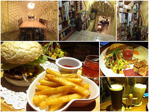 店面小小的,靠窗邊只有兩個位子,店裏頭四、五桌,剛進NaiYe的第一個感覺就是--熱。不知道是廚房半開放式的關係還是燈具的問題還是冷氣不強,反正就是燜熱,所以選擇到地下室去,喔~眼睛有馬上亮了起來,好可愛的巢(網路上的照片都拍這裡),整個空間都是用竹編的,我愛這兒的設計,而且這兒涼爽多了,可惜地下室沒收訊,Dear沒法工作(是的,大爺是排休一天但其實是帶著NB到可以喝咖啡的地方--繼續工作)所以我們又回到地面上來,坐在離廚房最近的一桌。(一樓,訊號也不好,連打卡都很難~)