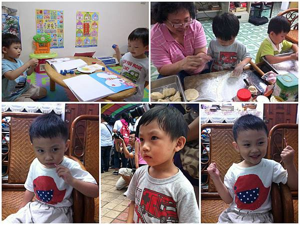 6.奶奶跟小姑姑補充說:一回帶小恩坐火車,也是一個阿嬤準備要讓位給小恩,但小恩拒絕了,小恩回:媽媽說,博愛座是要先給阿公阿嬤坐的~喔~怎麼那麼感心呀!!馬上得到阿嬤的歡心,又聊起來了~媽媽在哪裡? 媽媽在上班。那爸爸在幹嘛?? 爸爸在睡覺。(筐鐺~這回答想嚇死人嗎~)但當天我帶小子們出門上班上課時大爺的確在睡覺,晚一點才去上班,幸好小恩有繼續講,爸爸晚上上班很晚很辛苦...叭啦叭啦...最後由婆婆現場總結-他阿爸是作晚班的。(驚...大爺你轉行了嗎??)