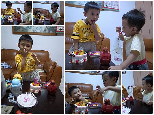 原本還在想小恩真的愛吃鮮奶油嗎??平常根本沒買過呀~沒想到這小子竟然用手指一直挖一直挖,狂嗑奶油耶~阿倫倫也有樣學樣~夭壽...幸好你們兩個小、而且瘦巴巴,有的是本錢吃,阿母我完全不敢想像那些熱量有多恐怖??