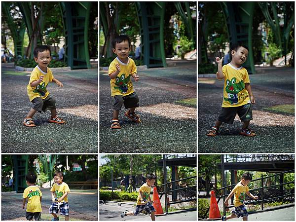 這兒不大,隨便找個地方站著就可以環顧整個廣場,但這兒有超大樹遮陰,而且還有為數可觀的鴿子,就夠兩小子跑到翻掉了~